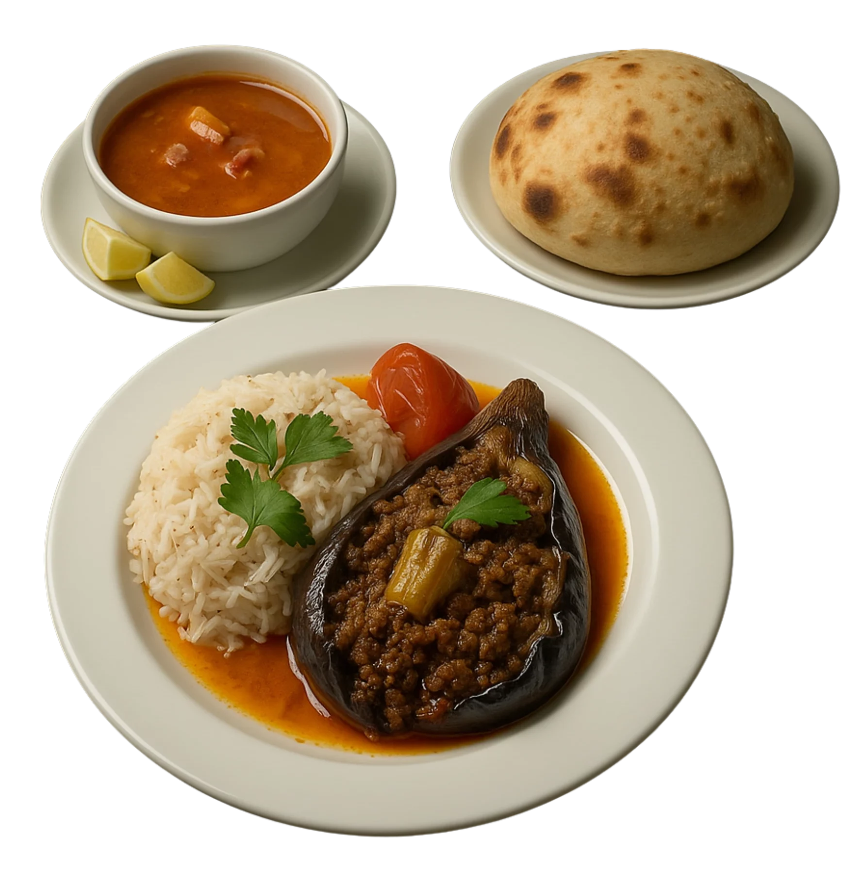 Mittagsmenü Karniyarik mit Suppe und Brot